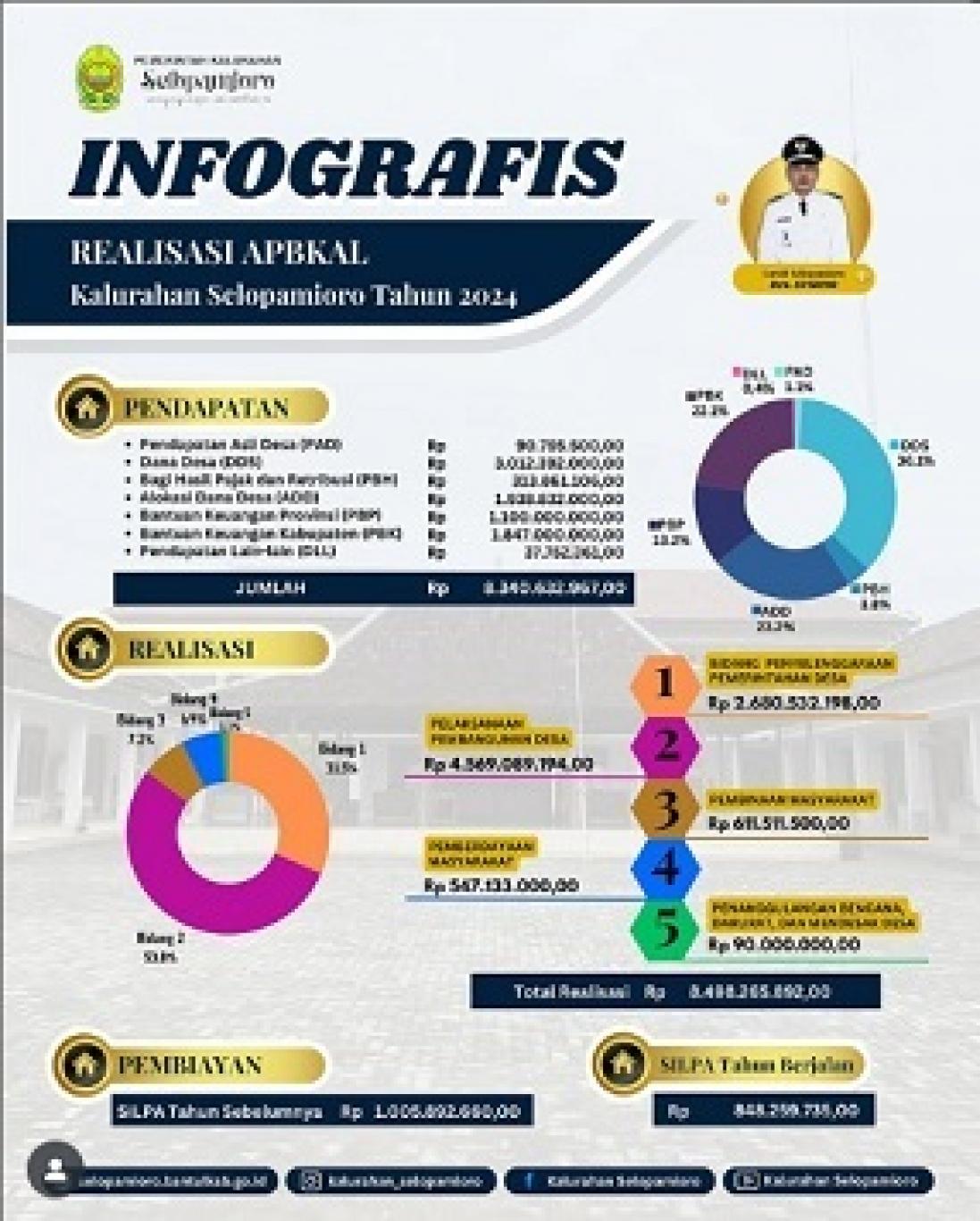 Berikut ini kami sampaikan Infografis Realisasi APBKAL Tahun 2024 #selopamioro #ademayem #infografis #apbkalselopamioro